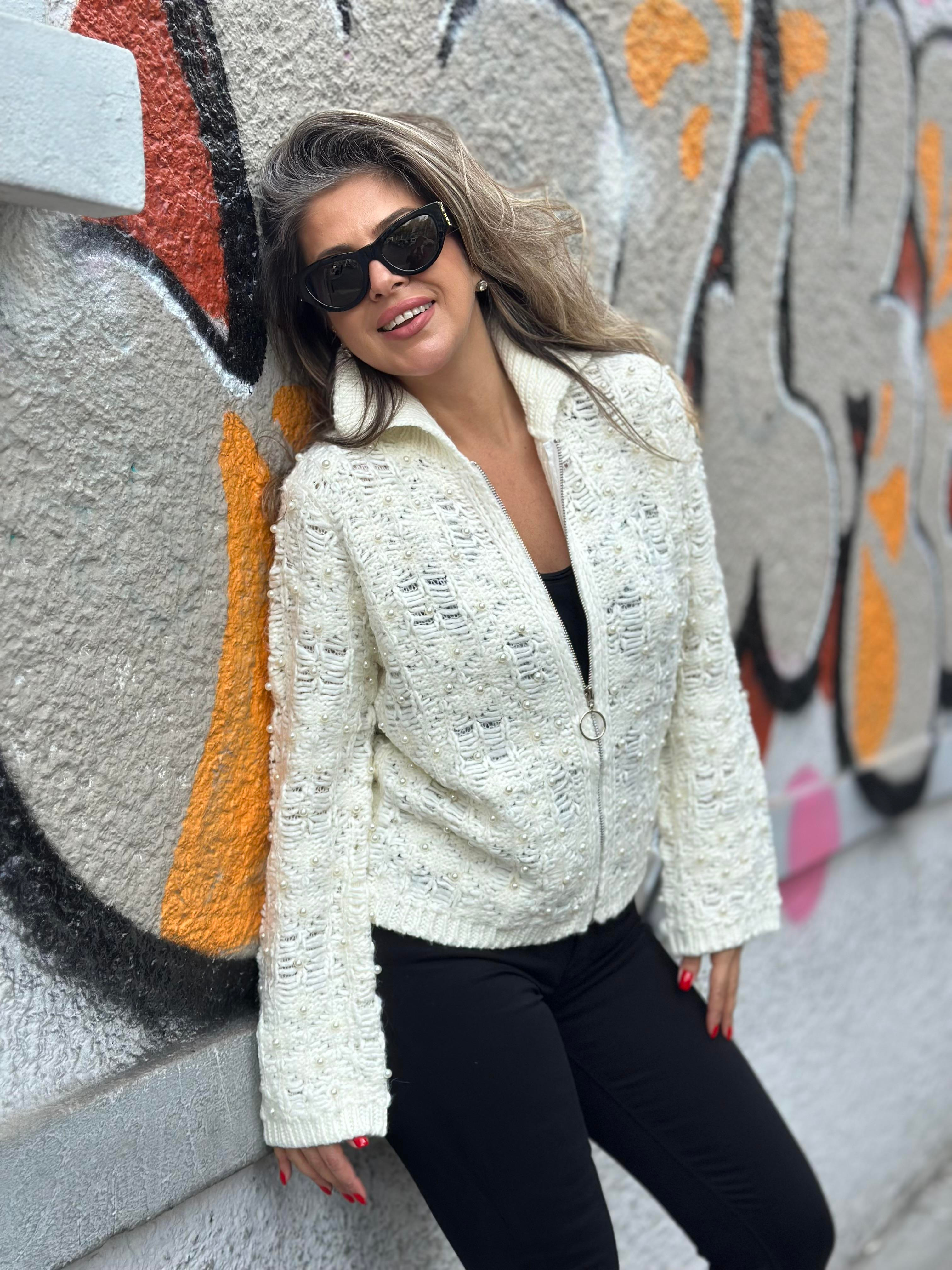 İncili Kazak Hırka Beyaz (BERTRK26B)