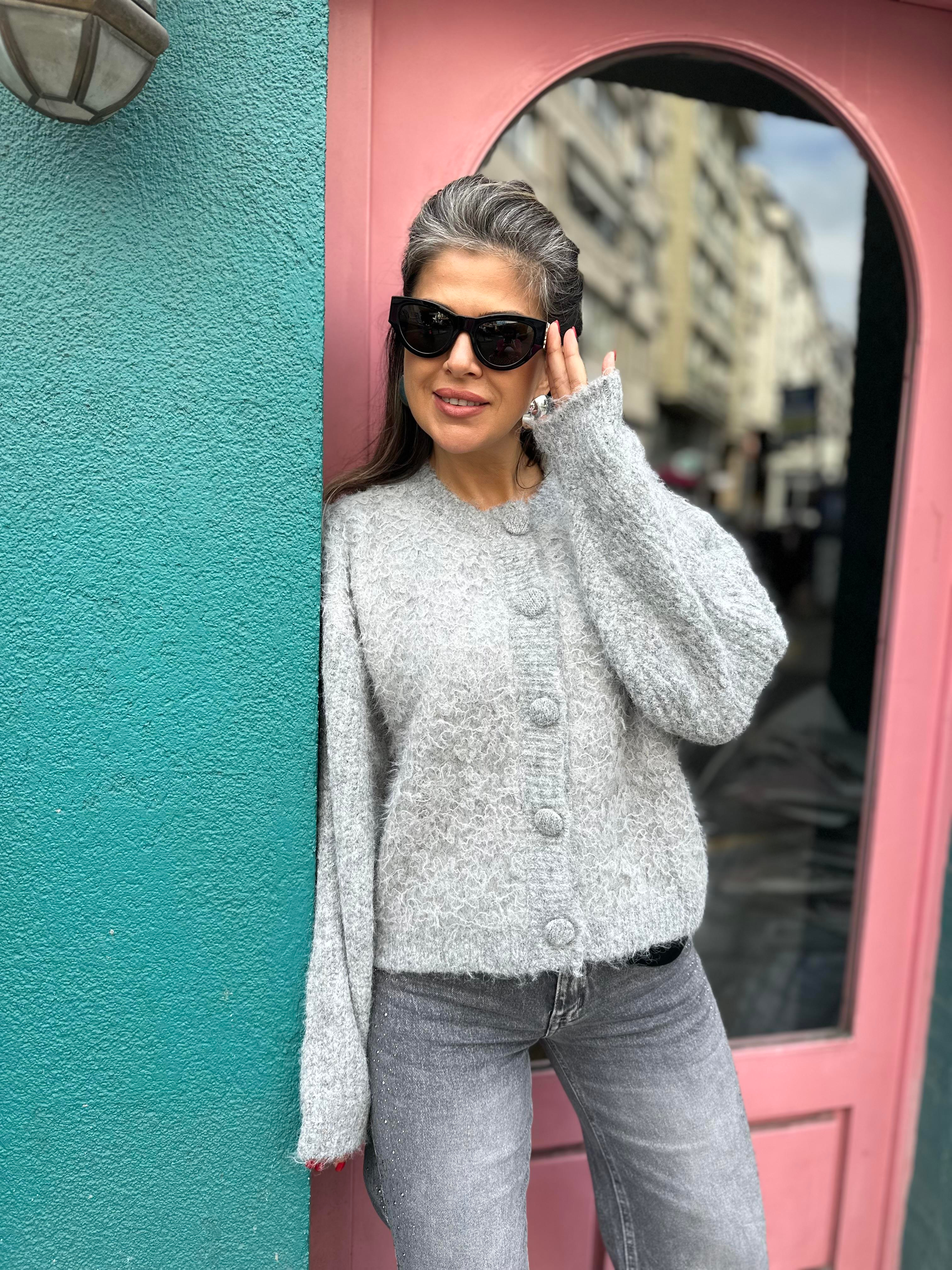 İşlemeli Yünlü Kazak Hırka (BERTRK28G)