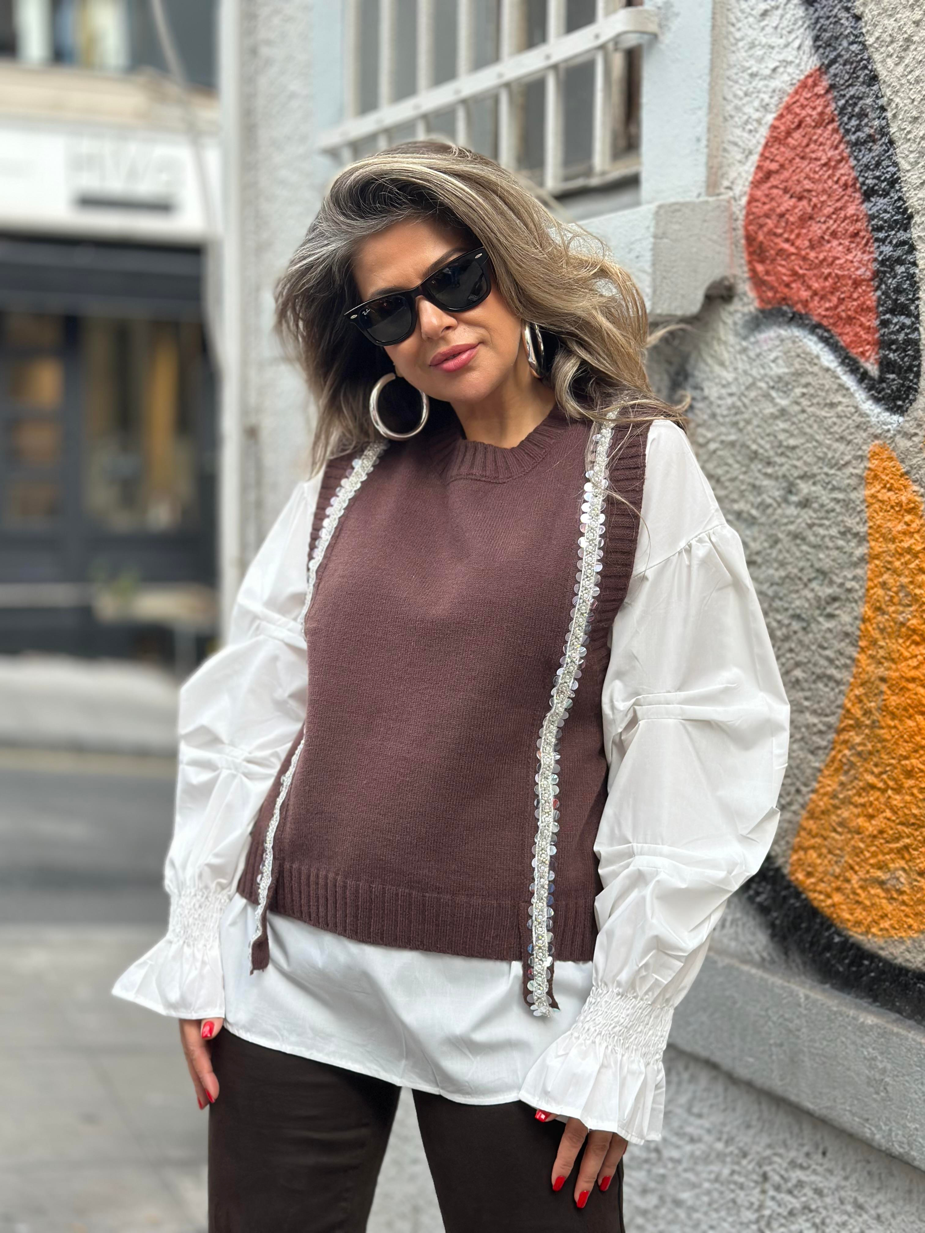 Kahve Süveterli Gömlek